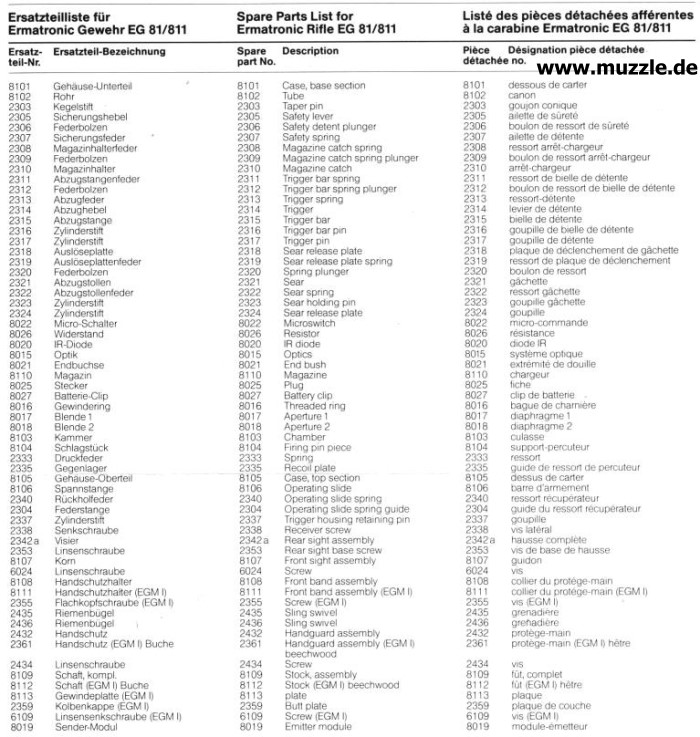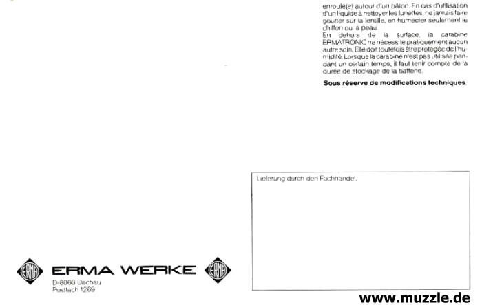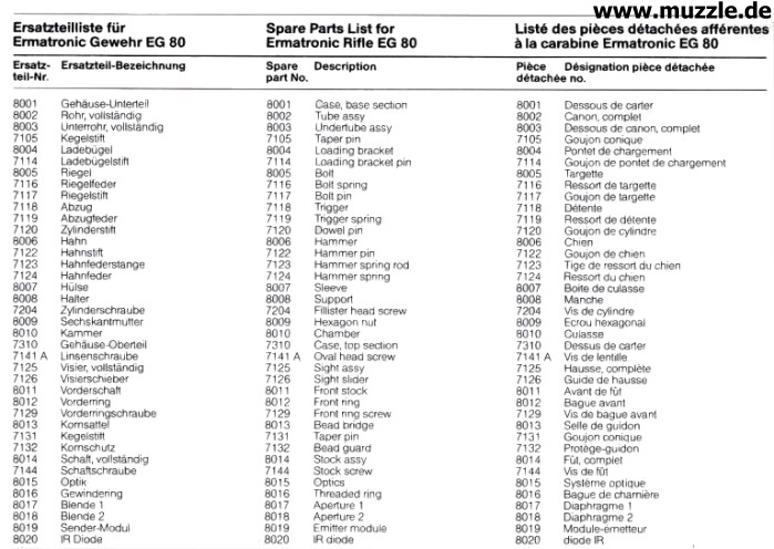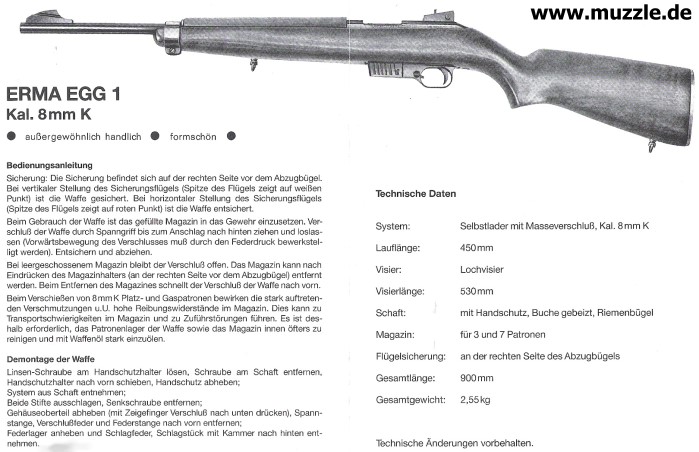 ERMA EG 80 ERMATRONIC Infrarot-Gewehr auf Basis des Unterhebelrepetierers ERMA ELG 10 Federdruck-Luftgewehr weitere ERMATRONIC-Modelle: EG 81 / 811 auf Basis des “ERMA EM 1” (Carbine .30 M1) EG 82 auf Basis des “ERMA EGG1” (Karabiner) EG 83 = Revolver