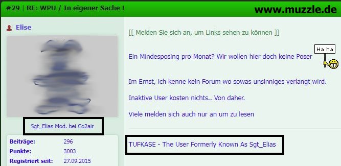„WPU“-Forum angemeldet, einem anderen, seit 2015 bestehenden Freie-Waffen-Forum, welches sich laut seinem Betreiber in Konkurrenz zum „co2air“-Board sah, aber leider keinerlei friedliche Co-Existenz anstrebte, sondern
