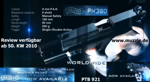 21.05.2008 im Bereich “CO2-Waffen”: ”Walther CP 88” (UMAREX) - Review nun zusätzlich auch in italienischer Sprache als “.pdf”-Datei verfügbar. Idee und Übersetzung “Black Cat”. - “muzzle.de” sagt Danke! 18.05.2008 im Bereich “Signal-Waffen”: Review “Röhm RG 96 Match”
