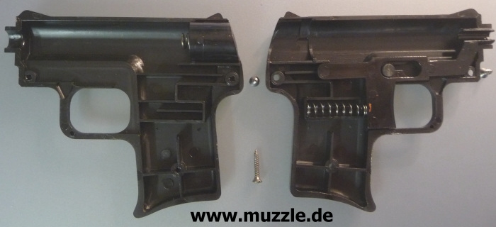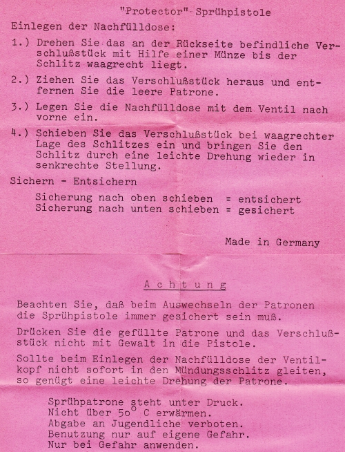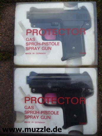 quasi um einen Spraybehälter in Pistolenform. Leider sind mit den beiden “Pistolen” keine Gasgebinde mehr überliefert, sodass eine Funktionsprüfung der Exemplare nicht mehr möglich ist. Dennoch handelt es sich hier