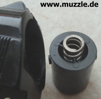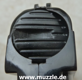 Sicherung: Schwenkhebel linksseitig blockiert den Abzug