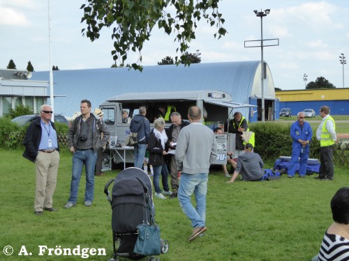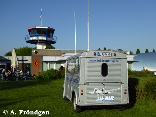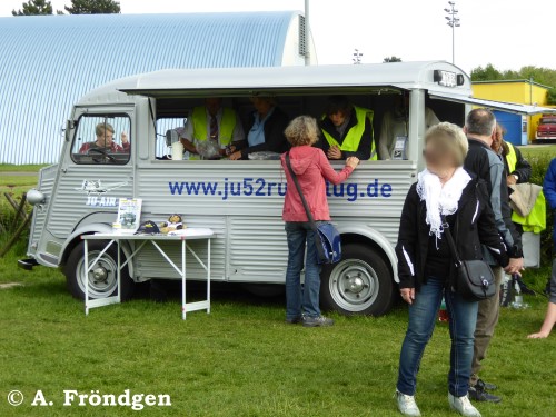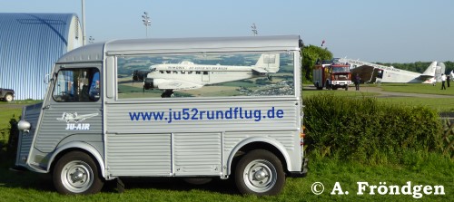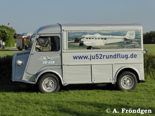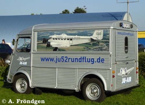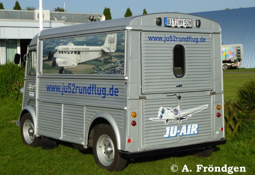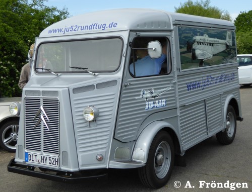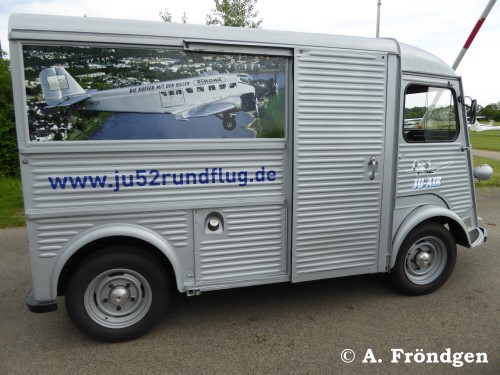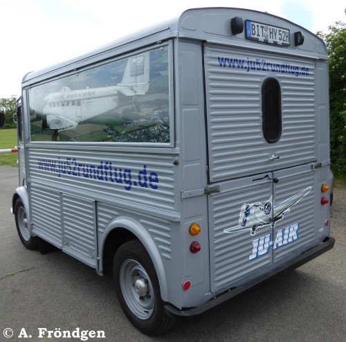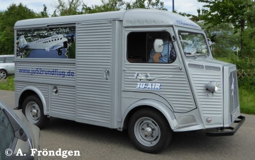 Der restaurierte “Citroen” Modell “H(Y)” gehört der “JU-AIR” und dient als Kassenhäuschen. Die Wellblech-Konstruktion des Oldtimers (1947 - 1981) passt optisch hervorragend zur “JU 52”. (Fotos am Standort Leverkusen, Flugplatz “Kurtekotten”, 15./16./17.05.2015).