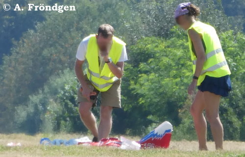 Absturz während der Flugvorführung und Bergung eines Modell-Jets auf dem Rollfeld.