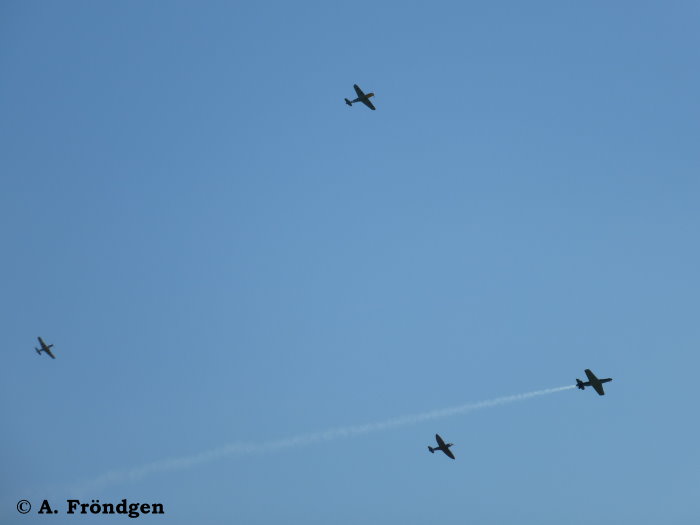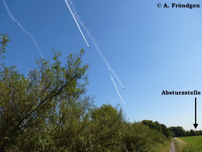 legendärer Jagdflugzeuge (Maßstab 1:4) spektakuläre Flugmanöver und Luftkampfsimulationen. Dabei kam es gegen ca. 14:45 h zum Absturz einer der Maschinen wegen eines Motoraussetzers. Der Nachbau eines einmotorigen US-Jägers vom
