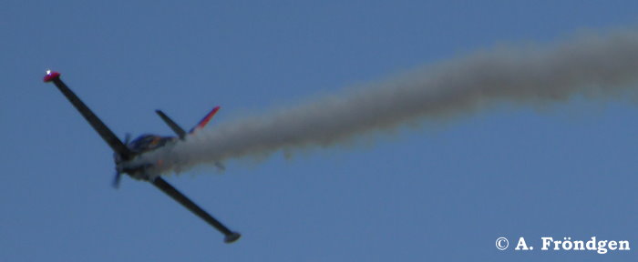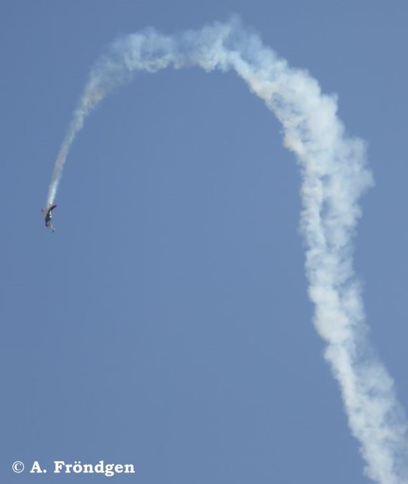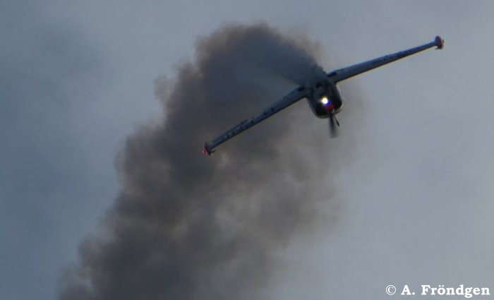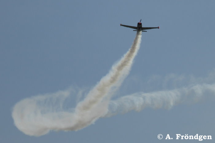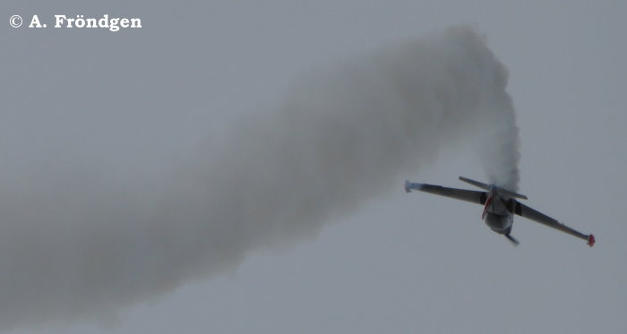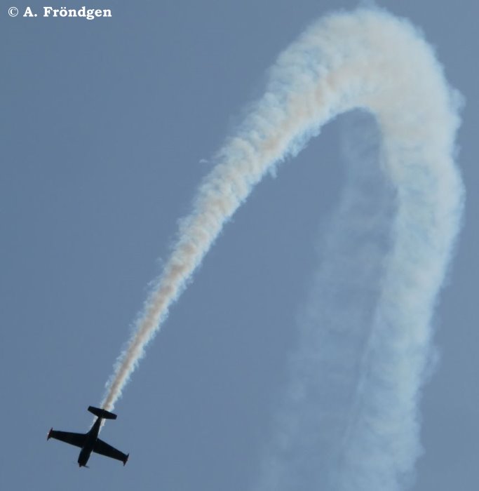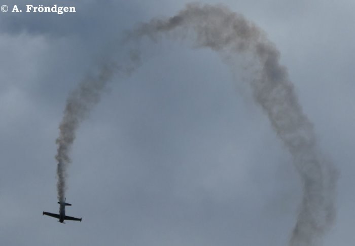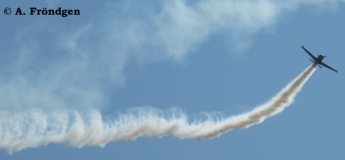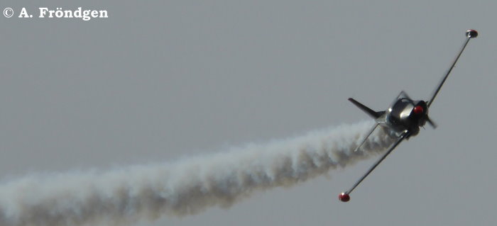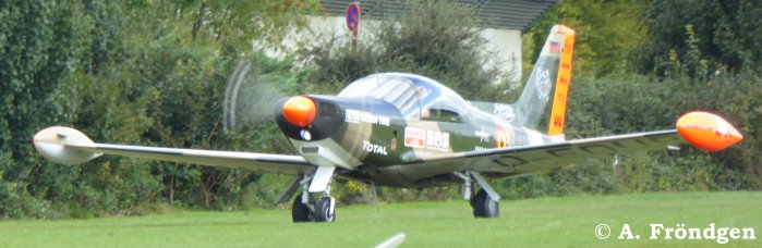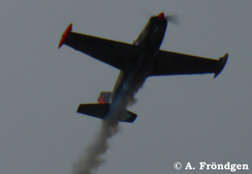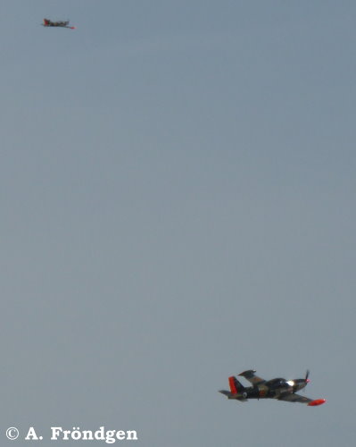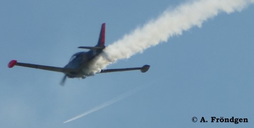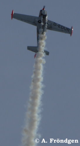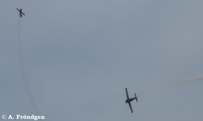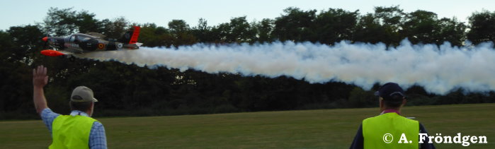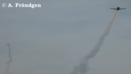 Fotos unten: Synchron-Kunstflug: Ralf Niebergall mit der “SIAI Marchetti SF-260” und sein Sohn Nico Niebergall mit einem RC-Modell im Verhältnis 1:3.