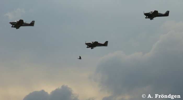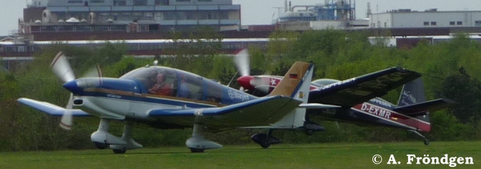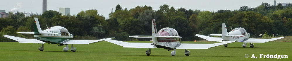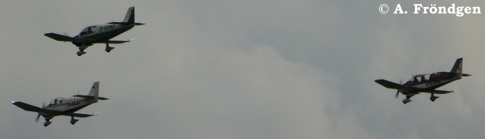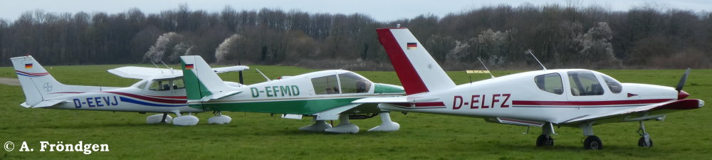 Foto unten: “Socata TB-9 Tampico” mit “Robin DR400-180” (D-EFMD) und “Cessna 172 M Skyhawk” (D-EEVJ)
