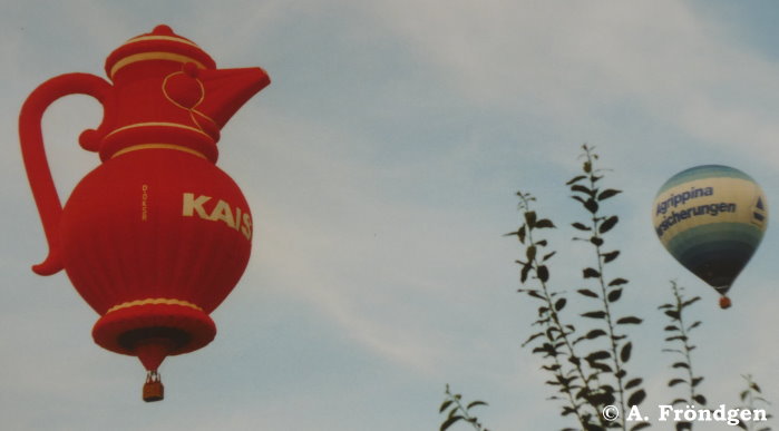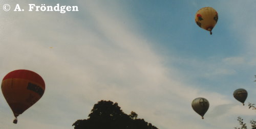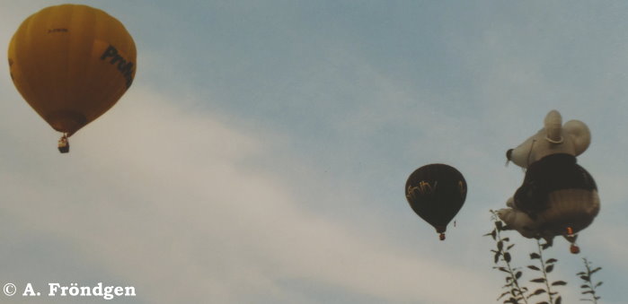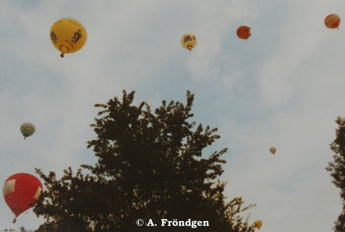 25.07.1998 - Leverkusen Ballons: “Kellog’s” D-OKCF, “Stoppelmarkt” D-OVEC, “Toyo-Reifen” D-OYOT, “Uli Stein”-Maus D-ONEE, “Infinity” D-OEAR, “Warsteiner” D-OWBZ, “Kaiser’s” D-OKSR, “borfrost” G-BWBE, “Lefax” D-OFAX, “PLUS” D-Speldorf