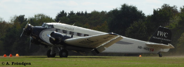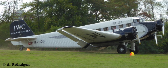 Junkers JU 52 (JU-AIR) - HB-HOS mit “IWC”-Lackierung Leverkusen, Flugplatz Kurtekotten, 08./09.09.2018