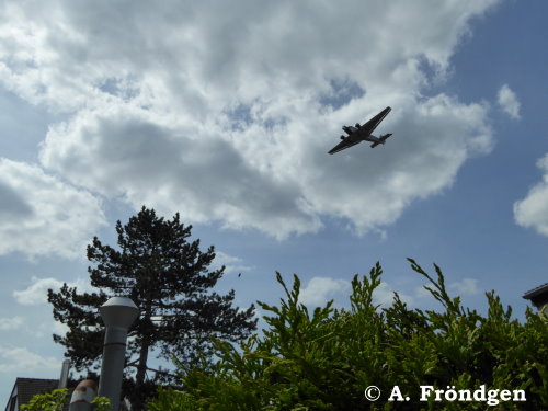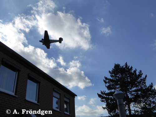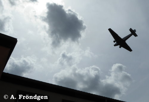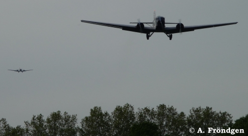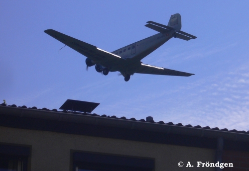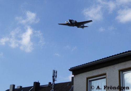 Kein alltäglicher Anblick: Zwei “JU 52”-Maschinen im Anflug auf Leverkusen.