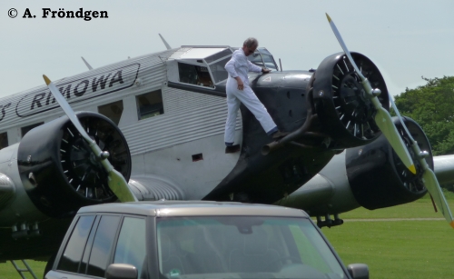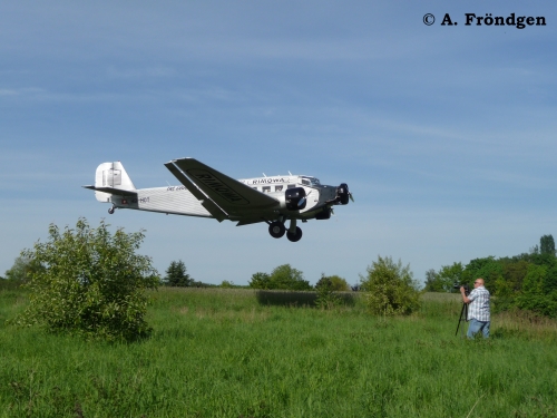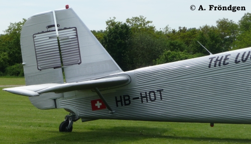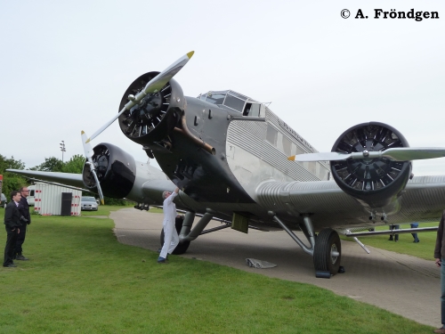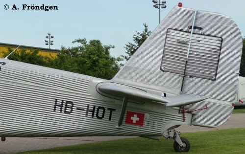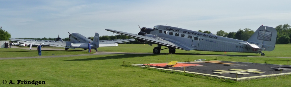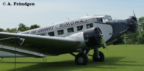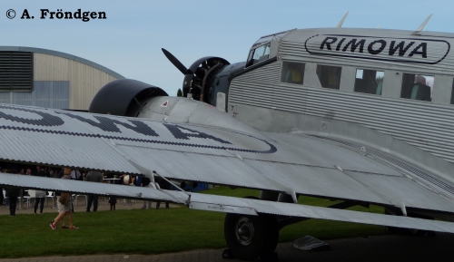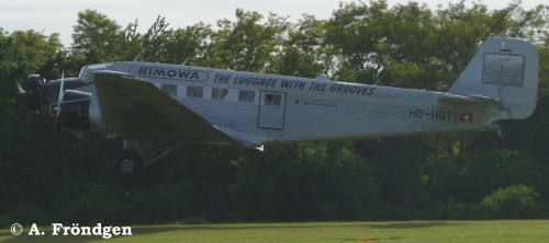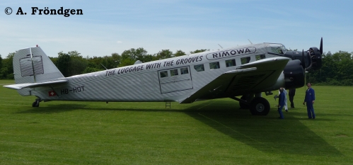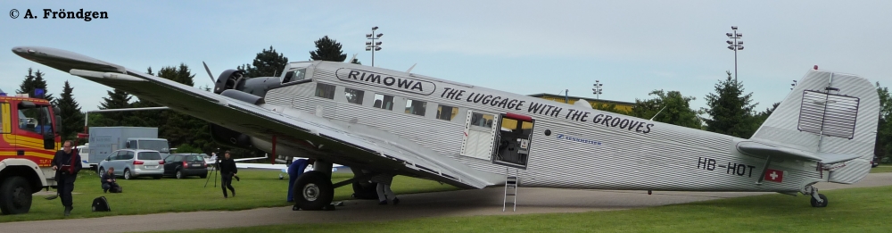 Junkers JU 52 (JU-AIR) - HB-HOT mit “RIMOWA”-Lackierung (englisch) Leverkusen, Flugplatz Kurtekotten (EDKL), 03.05.2014