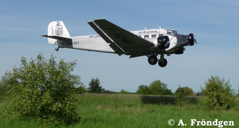 Junkers JU 52 (JU-AIR) - HB-HOT mit “RIMOWA”-Lackierung (englisch) Leverkusen, Flugplatz Kurtekotten EDKL, 17.05.2012