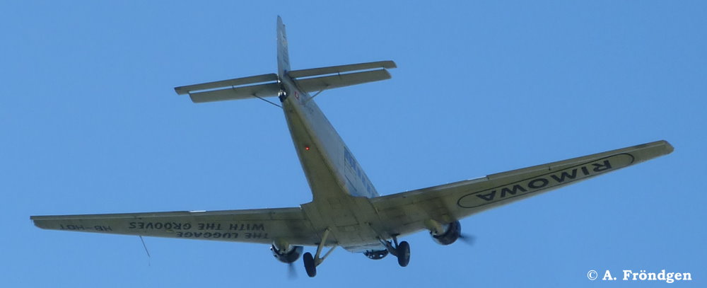 Junkers JU 52 (JU-AIR) - HB-HOT mit “RIMOWA”-Lackierung (englisch) Überflug Köln, 24.05.2016