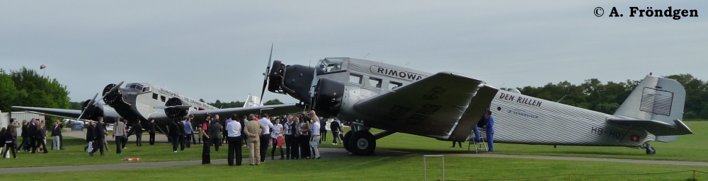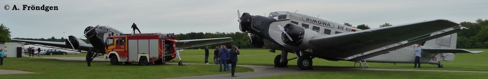 Junkers JU 52 (JU-AIR) - HB-HOT und HB-HOY mit “RIMOWA”-Lackierung Leverkusen, Flugplatz Kurtekotten, 17.05.2012 - Eine Begegnung der dritten Art...