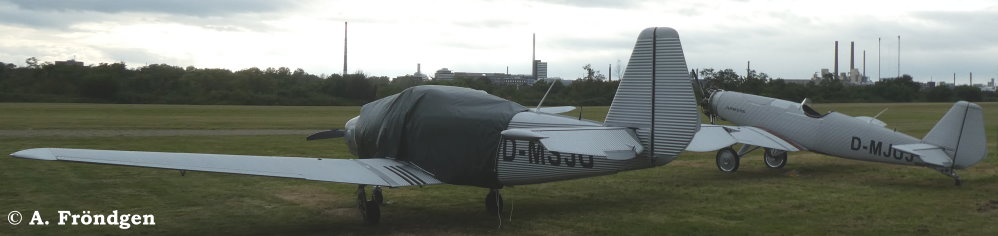 Foto unten: Die “A60” (links im Bild) mit “A50 ci Heritage” D-MJUJ mit 124 PS Sternmotor (rechts) und “A 50 Junior” D-MJFW (im Hintergrund)