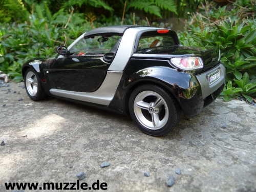 “burago” Modell Smart Roadster, schwarz/silber, Maßstab 1/18, Made in Italy