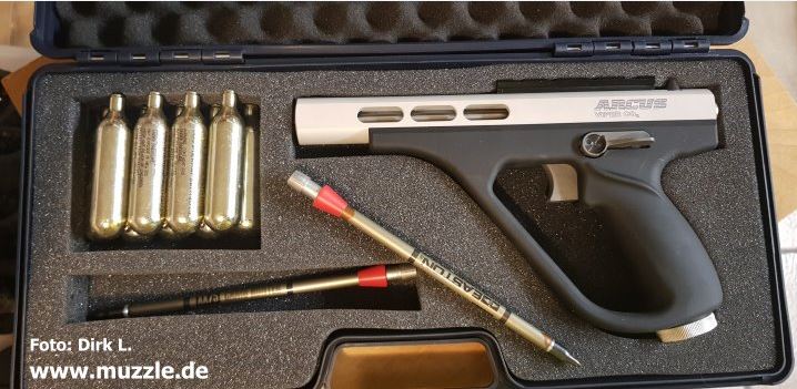 WBK-Pflichtigkeit (mit Bedürfnis-/Sachkundenachweis) ab Sommer 2020 unter neuem Waff.G.: Salut-Langwaffen waren bislang frei ab de, 18. Lebensjahr erwerb- und besitzbar. Mit der Novellierung des Gesetzes werden diese auch für Altbesitzer grundsätzlich WBK-pflichtig. Diese Regelung gilt für Salut-Kurzwaffen schon längst. Entweder müssen die betroffenen Langwaffenbesitzer zukünftig eine WBK beantragen, oder die Waffe einer berechtigten Person überlassen bzw. vernichten. Eine Sachkunde-/Bedürfnisprüfung ist für Altbesitz wohl nicht vorgesehen. Die WBK wird auf Antrag nach positiv verlaufener Zuverlässigkeitsprüfung erteilt. Das sogenannte „wirtschaftliche Bedürfnis“ ist bei Altbesitz gegeben, weil ansonsten quasi eine Enteignung vorgenommen würde. Auch die Pfeilwaffen (Pfeilabschussgeräte) werden wie Schusswaffen WBK-pflichtig (Bedürfnis-/Sachkundenachweis)! Gemeint sind vormals freie Geräte, die nie vom Waffengesetz umfasst waren, weil sie kein Projektil durch einen Lauf verschießen. Hier sind z. B. das „Arcus Viper“ (Foto unten), “Arcus Arrowstar”, „Airringer“, „FX Verminator“, „FX Ranchero Arrow“, „FX Bobcat“ u. a. betroffen. Sehr wahrscheinlich wird auch hier eine WBK-Altbesitzregelung ohne Bedürfnisprüfung greifen.