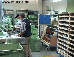dort gerade die neuen „Lever-Action“-Gewehre und die CPS montiert. Wie Herr Nienhaus ausführte, bleiben die Fertigungs-Plätze für jedes Waffen-Modell stets komplett bestückt, lediglich das Personal wird flexibel