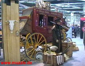 Ein weiterer Aussteller, der was zu bieten hatte, war "UMAREX/"Walther". Sehr schön und auffällig dekoriert, war ein großer Teil auf das neue Lever-Action-Gewehr ausgerichtet. Die Postkutsche war ein echter