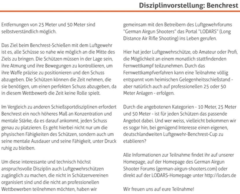 Long Distance Air Rifle Shooting (Germany) - eine Benchrest-Fernwettkampf-Disziplin Eine Initiative der Waffenzeitschrift “Die Knifte” und dem Internet-Forum “German Airgun Shooters”