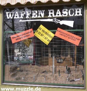Wer das GeschĂ€ft von Thomas Bellingroth aufsuchen möchte, dem sei gesagt, dass Leverkusen verkehrsgĂŒnstig ĂŒber die A1 und die A3 zu erreichen ist, dann Richtung Innenstadt orientieren. Schlusswort: Ich selber bin bei âWaffen-Raschâ seit ĂŒber 20 Jahren Kunde und kann mir daher sicherlich eine aussagekrĂ€ftige, wenn auch naturgemĂ€ss subjektive Beurteilung erlauben. Ich habe, besonders seit der GeschĂ€ftsĂŒbernahme durch T. Bellingroth, dort auch schon unkonventionelle und unbĂŒrokratische UnterstĂŒtzung erhalten, die ĂŒber das MaĂ der ĂŒblichen GeschĂ€ftsabwicklung hinaus ging. Somit kann ich guten Gewissens sagen, âWaffen-Raschâ in Leverkusen ist eine gute Adresse. Am 31.03.2006 endet der RĂ€umungsverkauf und dann schlieĂt âWaffen Raschâ in Leverkusen leider endgĂŒltig seine Pforte. :-(