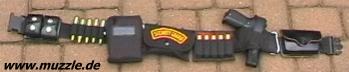 Hier ein Beispiel für die Bestückung eines Munition-/Schießgürtels mit praktischen Komponenten für das CO2-Actionshooting: