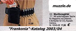 angeboten wird (siehe Katalogauszug). Der Gürtel hat einen Kunststoff-Koppel mit Schnappverschluss, wie man ihn häufig auch an Rucksäcken antrifft.