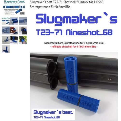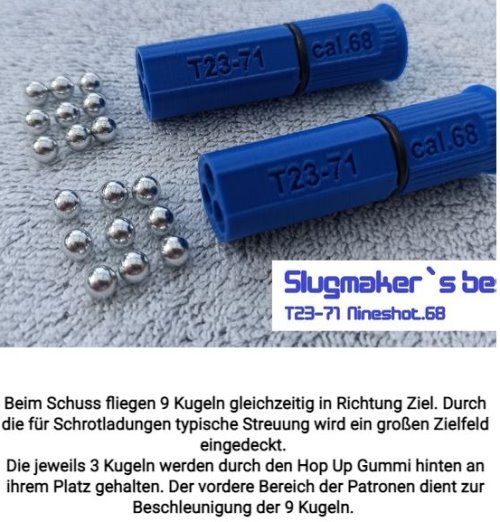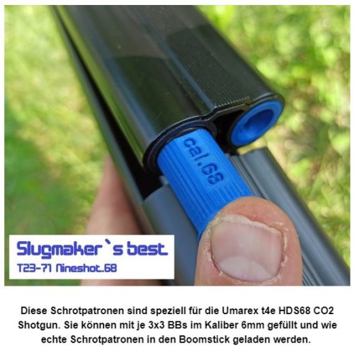 Nineshot .68 Ladehülsen (Schrothülsen) für das CO2-Shotgun “T4E HDS 68” von UMAREX. (Fotos unten). “T4E” steht für “Training For Engagement”, “HDS” für “Home Defense Series”.