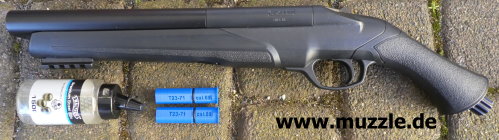Fazit: Wer eine “T4E HDS 68” besitzt, der sollte sich die Option dieses FunGun als Schrotpatronenwaffe zu verwenden, nicht entgehen lassen. Auf Zimmerdistanzen macht das richtig Laune und ist eine schöne Abwechslung zu Geschossarten wie Rubberballs, Kreidekugeln oder Slugs, etc.. - Preis aktuell knapp 22,- EUR.