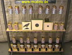 Pendelkartuschen, 9 Klappscheiben (lasergeschnitten), 6 Alukapseln, 5 Zielscheibenkästen, 5 Ziele im eingehängten Entenkasten, 8 Filmdosen und 26 Weißblechdosen. Durch die Verwendung von z.B. einem Nagelbrett mit weiteren
