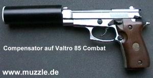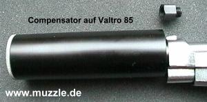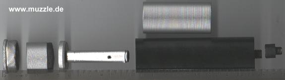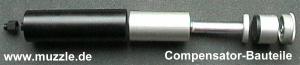 Technische Daten: Länge: 120 mm Durchmesser: 35 mm Gewicht: ca. 140 g Anschlussgewinde „M10“ (Ein Adapter für andere Waffenfabrikate ist im Fachhandel erhältlich) Dämpfungswerte: Mündungsfeuer: 100 % Gasdruck: 100 % Schussknall: ca. 37 % Wichtiger Hinweis: Wie sich bei Praxistests verschiedener Anwender herausstellte, kann es trotz sach- und bestimmungsgemäßer Anwendung des Kompensators unter Umständen zu teilweise erheblichen Schäden an den dabei verwendeten Schreckschusswaffen kommen. So sind bereits Fälle dokumentiert, wo z. B. der Schlittenfanghebel zerstört wurde oder gar der Lauf im Bereich des Abschussbechergewindes brach. Mutmaßlich ist das darauf zurück zu führen, dass durch den verstärkten Druckrückstau bei Schussabgabe mit aufgeschraubtem Kompensator und/oder das damit verbundene zusätzliche Laufgewicht so hohe Kräfte auftreten, dass qualitativ weniger gute Waffen diesen nicht gewachsen sind. Andere Überlegungen zielen darauf ab, dass durch die erhöhte mechanische Krafteinwirkung des bei Passformmängeln evtl. auf das Adapterstück auftreffenden und nach dem repetieren rücklaufenden Schlittens, es zu den bezeichneten Schäden kommen kann. Vorsicht ist also geboten! Es sollten nach meiner Überzeugung nur Schreckschusswaffen verwendet werden, die gehobenen Qualitätsansprüchen genügen. Es dürfte wohl schwierig sein, den ggf. entstandenen Schaden an der Waffe, beim jeweiligen Hersteller geltend zu machen, denn der Kompensator ist ein firmenfremdes Zusatzteil, für dessen Verwendung die Waffen nicht unbedingt ausgelegt sind. Der Hersteller des Kompensators wird die Schäden den vermeintlich schlechten Qualitätsstandards der Waffenhersteller zuschreiben. So könnte es sein, dass der Anwender auf dem entstandenen Schaden sitzen bleibt. Anders liegt die Sache wohl möglich, wenn Waffe und Kompensator als “Gespann” bei einem Händler zusammen erworben wurden. Jedoch Unannehmlichkeiten sind auch dann wohl nicht auszuschließen.
