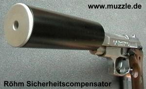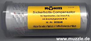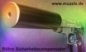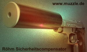 Der Sicherheitskompensator für Schreckschusswaffen wird als Handelsware von der Firma „Röhm“ vertrieben. Erfinder und Hersteller ist Dr. Detlev Joniskeit (www.joniskeit.de). Im Sommer 1998 kam der erste Kontakt zwischen „Joniskeit“ und „Röhm“ zustande. Nach Abschluss der Verhandlungen wurde der damals noch unter der Bezeichnung „Mündungsfeuerdämpfer“ firmierende Kompensator im März 1999 auf der „Internationalen Waffen Ausstellung“ (IWA) am „Röhm“-Stand dem Publikum vorgestellt. Man verzeichnete dabei eine recht erfreuliche Resonanz. Allerdings gab es auch die eine oder andere Verunsicherung wegen der bestehenden und der zukünftig zu erwartenden Rechtslage, sowie den damit verbundenen Interpretationsmöglichkeiten rund um den Begriff „Schalldämpfer“, denn ein ‚echter’ Schalldämpfer ist nach deutscher Rechtslage nur mit einem entsprechenden Bedürfnisnachweis legal zu erwerben und zu besitzen und bedarf eines behördlichen Eintrages in die Waffenbesitzkarte (WBK).