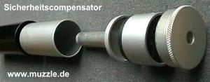 So kann also die Funktion einer Schreckschusswaffe gefahrlos geprüft werden, z.B. nach einer erfolgten Reparatur oder Instandsetzung, da sie auch mit Sicherheitskompensator einwandfrei repetiert. Dazu ist der Kompensator nur auf die Mündung zu schrauben, unter Verwendung des vorhandenen Gewindes für den Signalbecher.