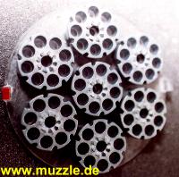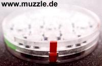 Diabolo-Speedloader für Trommelmagazine Der CO2-Freizeitschütze kennt den Moment, wo er sich eine hilfreiche Hand herbeiwünscht. Gemeint ist die Situation, wenn nach einigen raschen Schussfolgen aus der UMAREX-Pistole alle Metalltrommeln leergeschossen vor ihm liegen. Wie gerne würde man nun die nächste vorgeladene Trommel in der Waffe platzieren und den vergnüglichen Teil fortsetzen. Doch vor dem „Preis“ kommt immer der „Fleiß“. So heißt es dann, in mühevoller Kleinarbeit die Trommeln mit Diabolos zu füllen, eine nach der anderen. Wenn dann die „Strecke“ der geladenen Trommeln vor einem liegt, weiss man, welche Fingerakrobatik man mit den bleigeschwärzten Fingerkuppen hintersich gebracht hat.