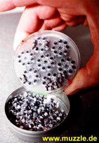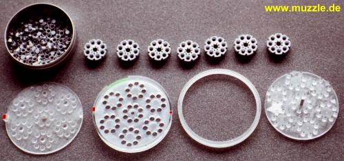 Ich konnte ihn nun ausgiebig testen. Nicht ein einziges Diabolo hatte sich dabei verkehrtherum in die Zuführungen der Trommelöffnungen gelagert. Genau dies waren nämlich meine Bedenken, als ich zum erstenmal von der Funktionsweise des Schnellladers erfuhr.