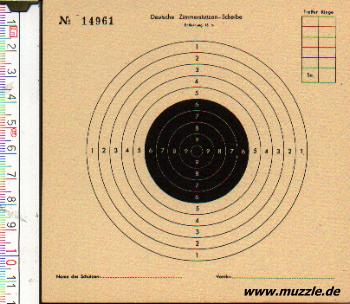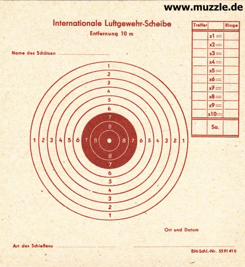 Bild unten links: Deutsche Zimmerstutzenscheibe 15 m / Bild unten rechts: “ISSF” Scheibe (Edelmann)