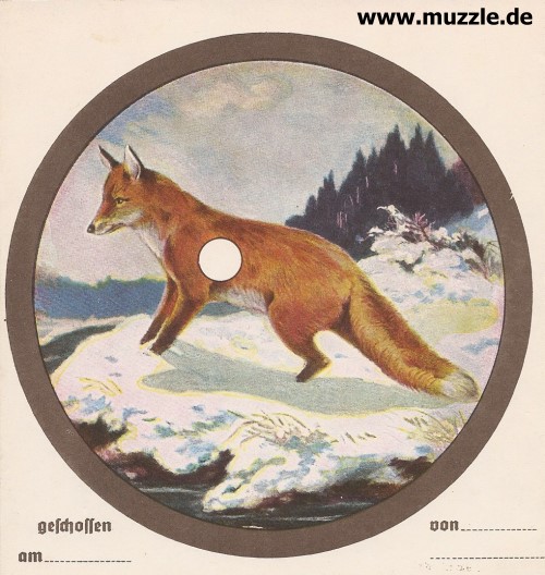 Bild unten: “Fuchs-Scheibe”, Karten-Maße: B=13 cm, H = 14 cm, Trefferzone Durchm. 10 mm. Herkunft