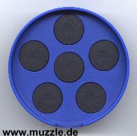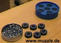und können einfach entnommen werden. Dann noch mit der Fingerkuppe die Diabolos fest die Trommelöffnungen eindrücken, und fertig liegen 6 geladenen “Twinmaster”- Trommelmagazine bereit.